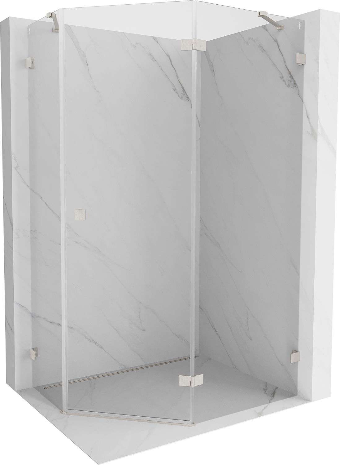 Mexen Lunar pětiúhelníková sprchová kabina, pravá 90 x 80 cm, transparentní, kartáčovaný nikl - 831-090P-080L-97-00-P
