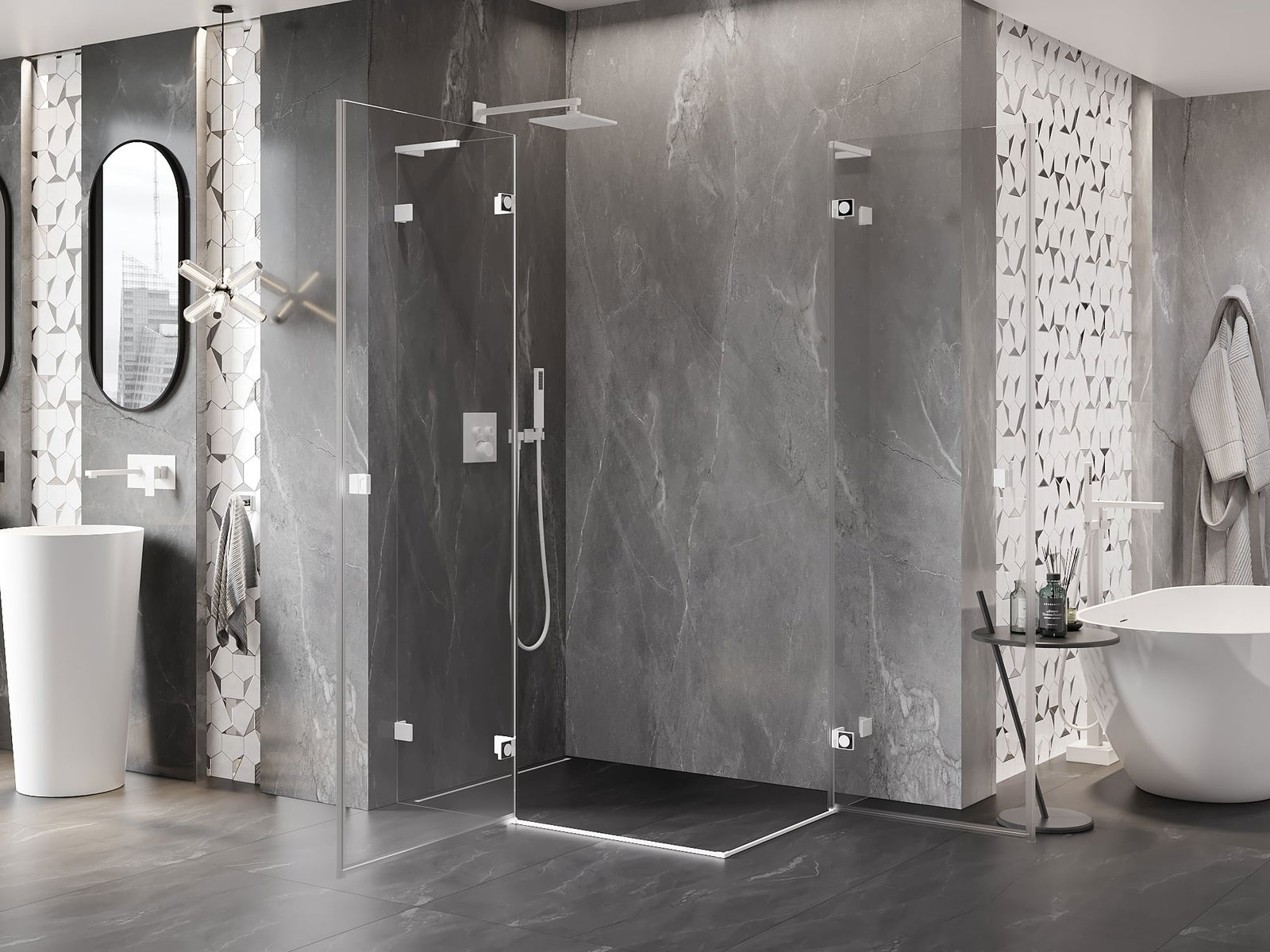 Spony a závěsy byly vyrobeny z velmi odolné mosazi a navíc vytvářejí zarovnanou plochu skla. Je to vynikající volba, která kombinuje eleganci, odolnost a moderní design. Díky těmto řešením získává sprcha na estetice a zároveň usnadňuje udržování čistoty.