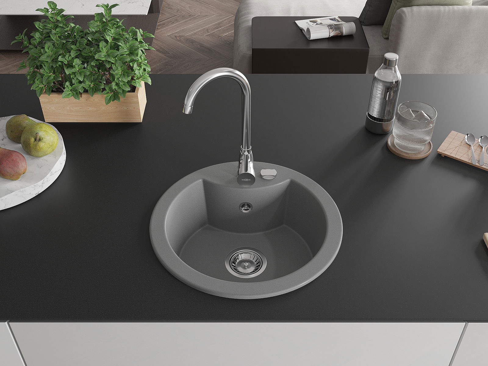 Dřez má předfrézovaný otvor o průměru 35 mm k samostatnému proražení. Může být použit například k montáži dávkovače na tekutinu, který eliminuje přítomnost plastových lahví v kuchyni a dodá jí elegantní finiš.