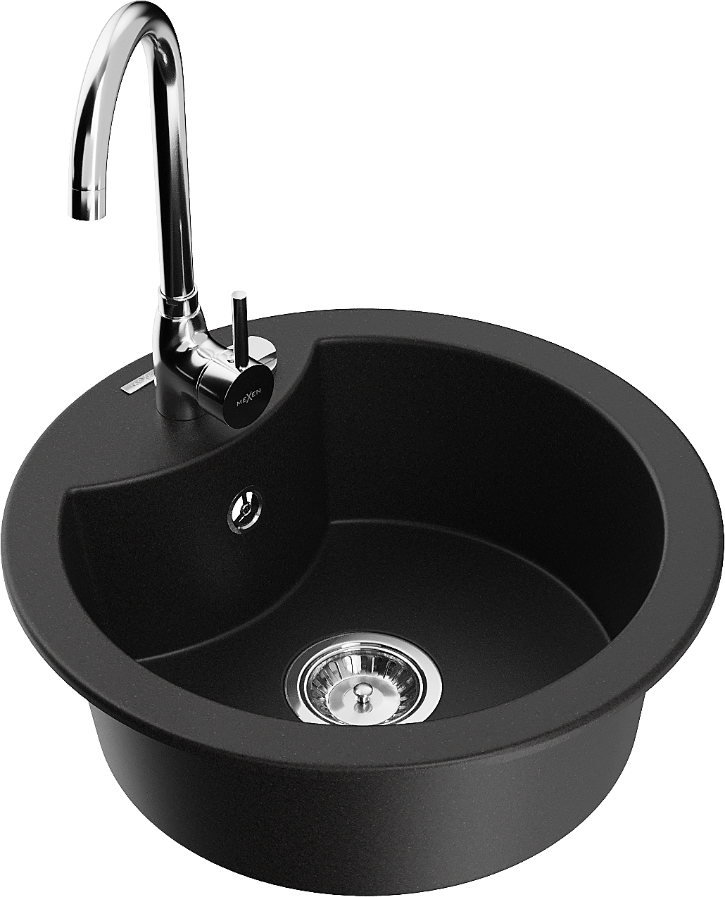 Mexen Diego granitový dřez 1-komorový s kuchyňskou baterií Telma, černý - 6512-77-670200-00