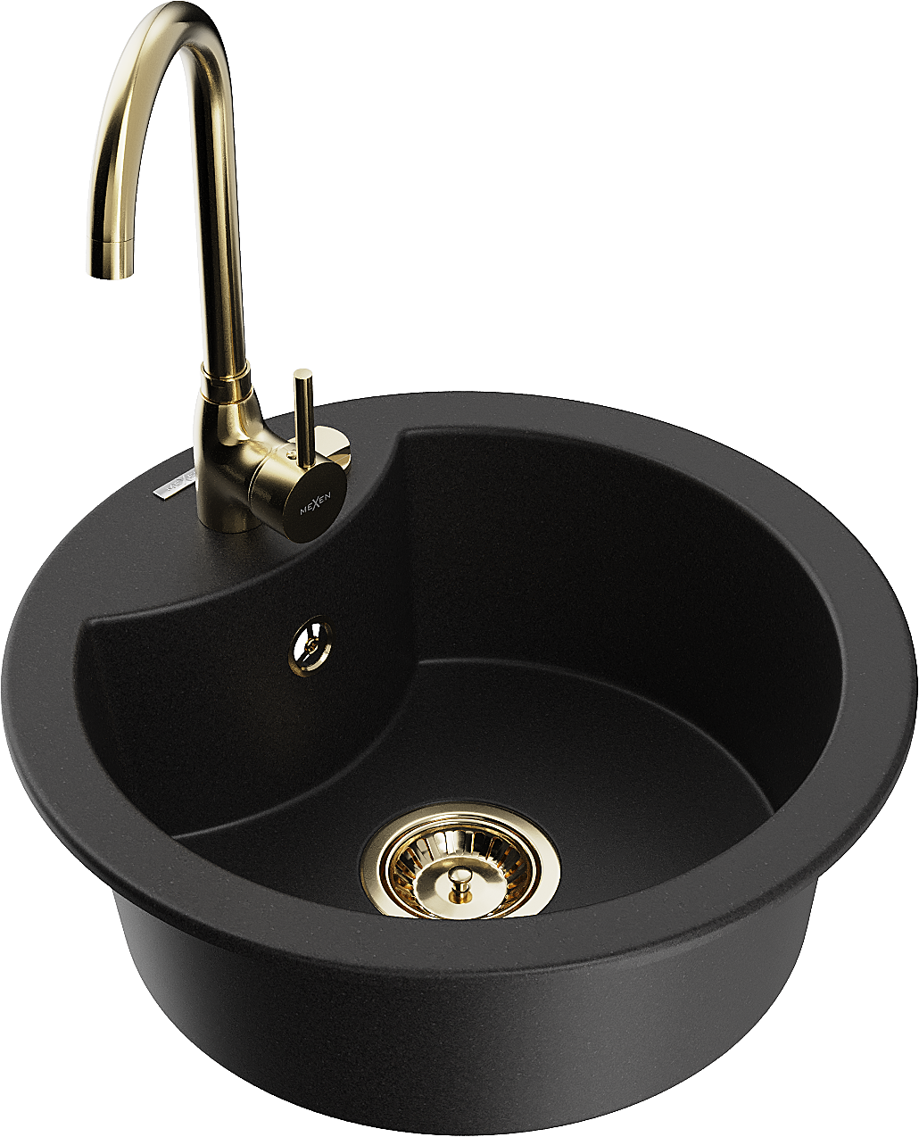 Mexen Diego granitový dřez 1-komorový s kuchyňskou baterií Telma, černý - 6512-77-670200-50