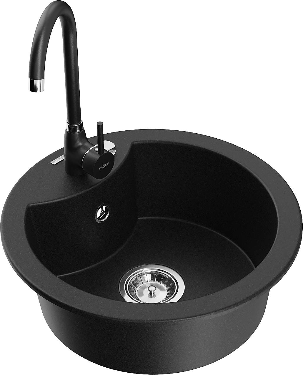 Mexen Diego jednokomorový žulový dřez s kuchyňskou baterií Telma, černý - 6512-77-670200-70
