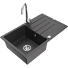 Mexen Bruno granitový dřez 1-komorový s odkapávačem a kuchyňskou baterií Telma, černý - 6513-77-670200-00