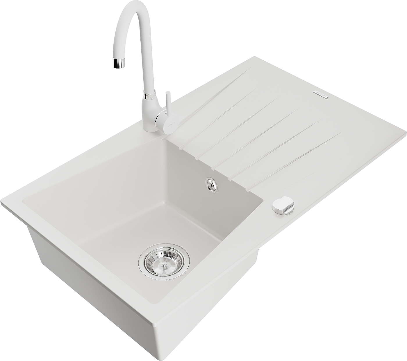 Mexen Cesar granitový dřez 1-komorový s odkapávačem a kuchyňskou baterií Telma, bílý - 6514-20-670200-20