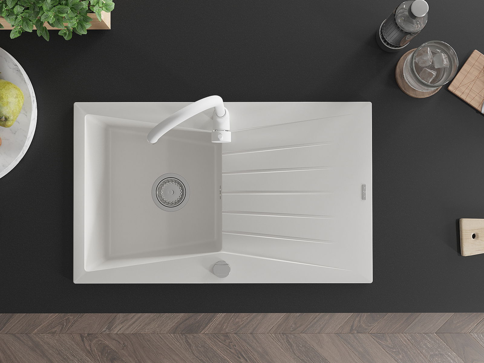 Povrch dřezu je velmi dobře vytvrzený, vyznačuje se výjimečnou odolností proti mechanickému poškození a poškrábání. Trvanlivý materiál umožňuje užívat si dobrý vzhled dřezu po mnoho let používání.