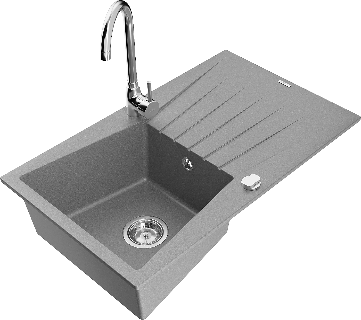 Mexen Cesar žulový dřez 1-komorový s odkapávačem a kuchyňskou baterií Telma, šedý - 6514-71-670200-00