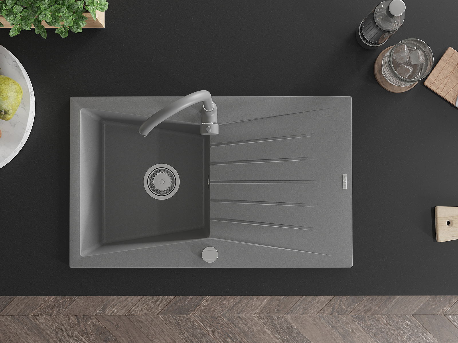 Dřez byl vyroben z vysoce kvalitního granitu. Představuje elegantní a především praktický doplněk každé kuchyně, bez ohledu na její styl. Vysoká kvalita a trvanlivost granitu zajišťují dlouholeté používání.
