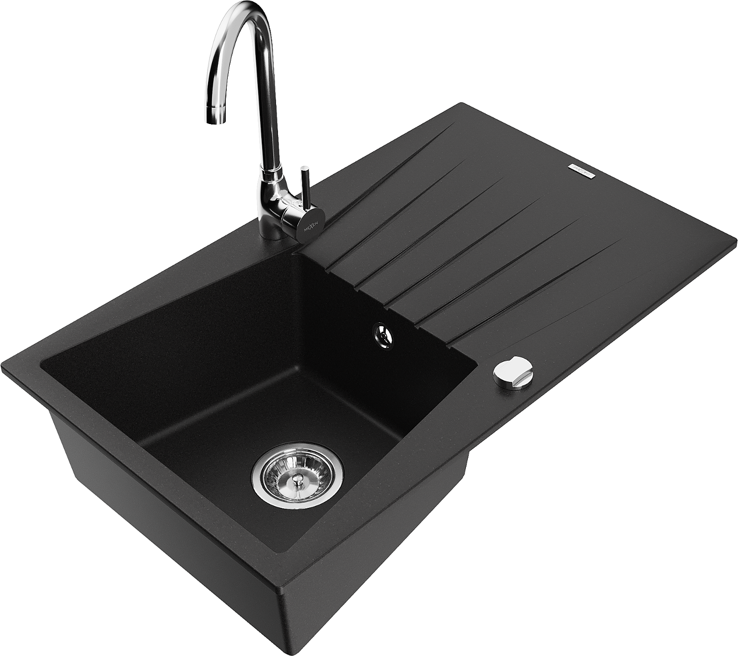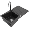 Mexen Cesar granitový dřez 1-komorový s odkapávačem a kuchyňskou baterií Telma, černý - 6514-77-670200-00