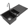 Mexen Andres žulový dřez 1,5-komorový s odkapávačem a kuchyňskou baterií Telma, šedý - 6515-71-670200-00