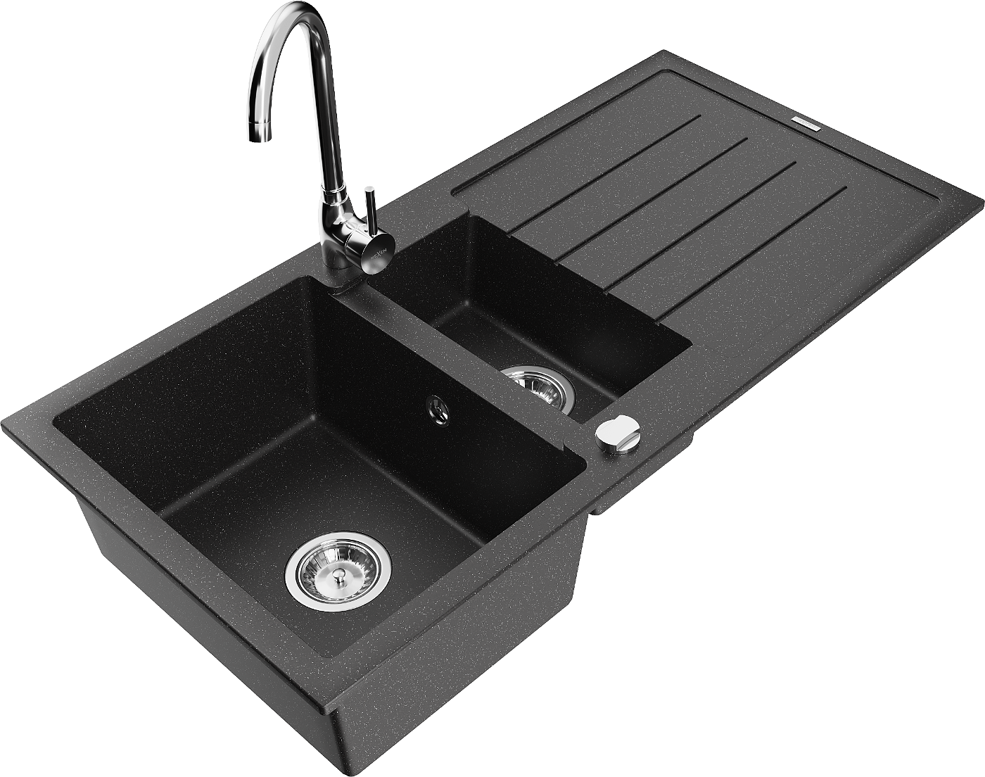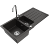 Mexen Andres granitový dřez 1,5-komorový s odkapávačem a kuchyňskou baterií Telma, černý/stříbrný - 6515-73-670200-00