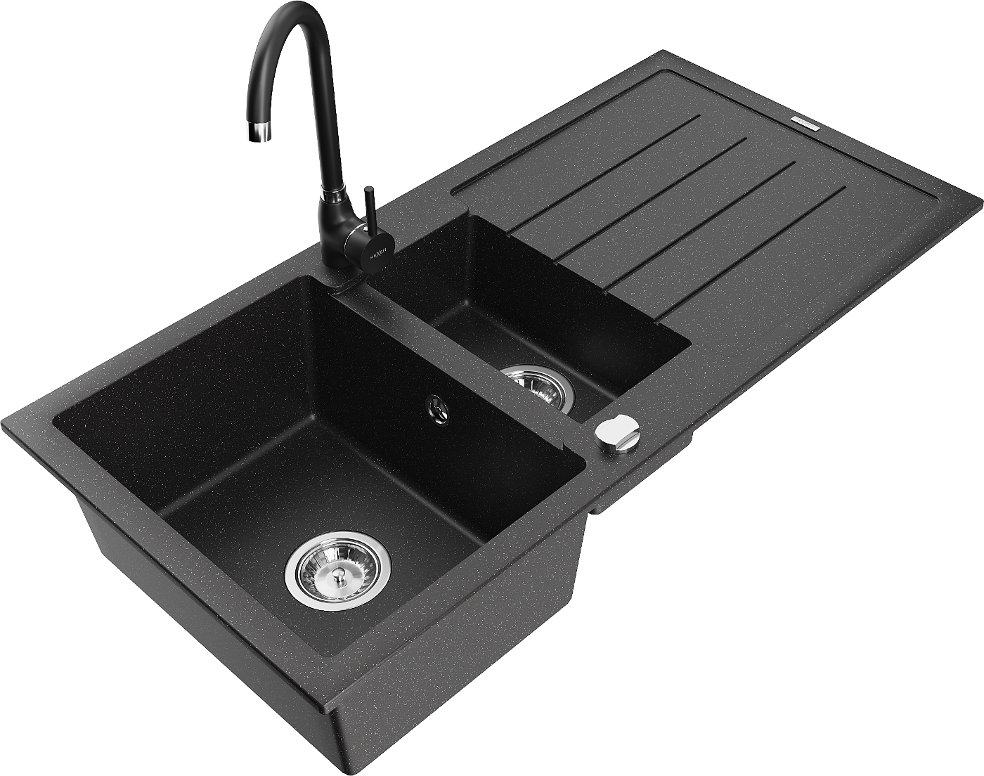 Mexen Andres granitový dřez 1,5-komorový s odkapávačem a kuchyňskou baterií Telma, černý/stříbrný - 6515-73-670200-70