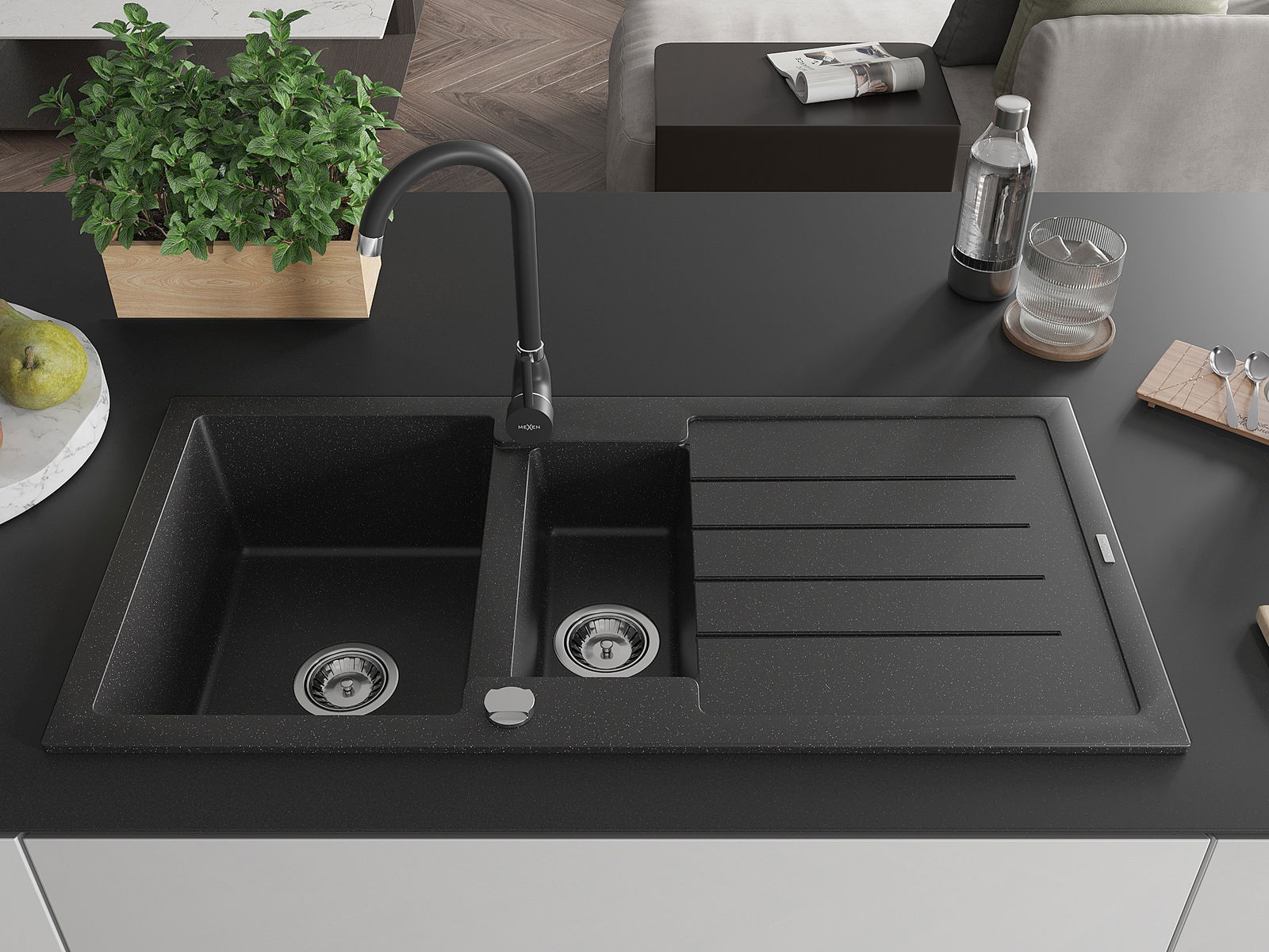 Dřez byl vyroben z vysoce kvalitního granitu. Představuje elegantní a především praktický doplněk každé kuchyně, bez ohledu na její styl. Vysoká kvalita a trvanlivost granitu zajišťují dlouholeté používání.