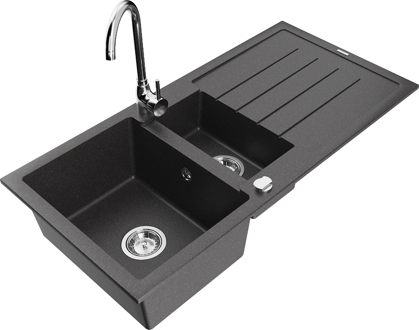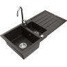 Mexen Andres granitový dřez 1,5-komorový s odkapávačem a kuchyňskou baterií Telma, černý skvrnitý - 6515-76-670200-00