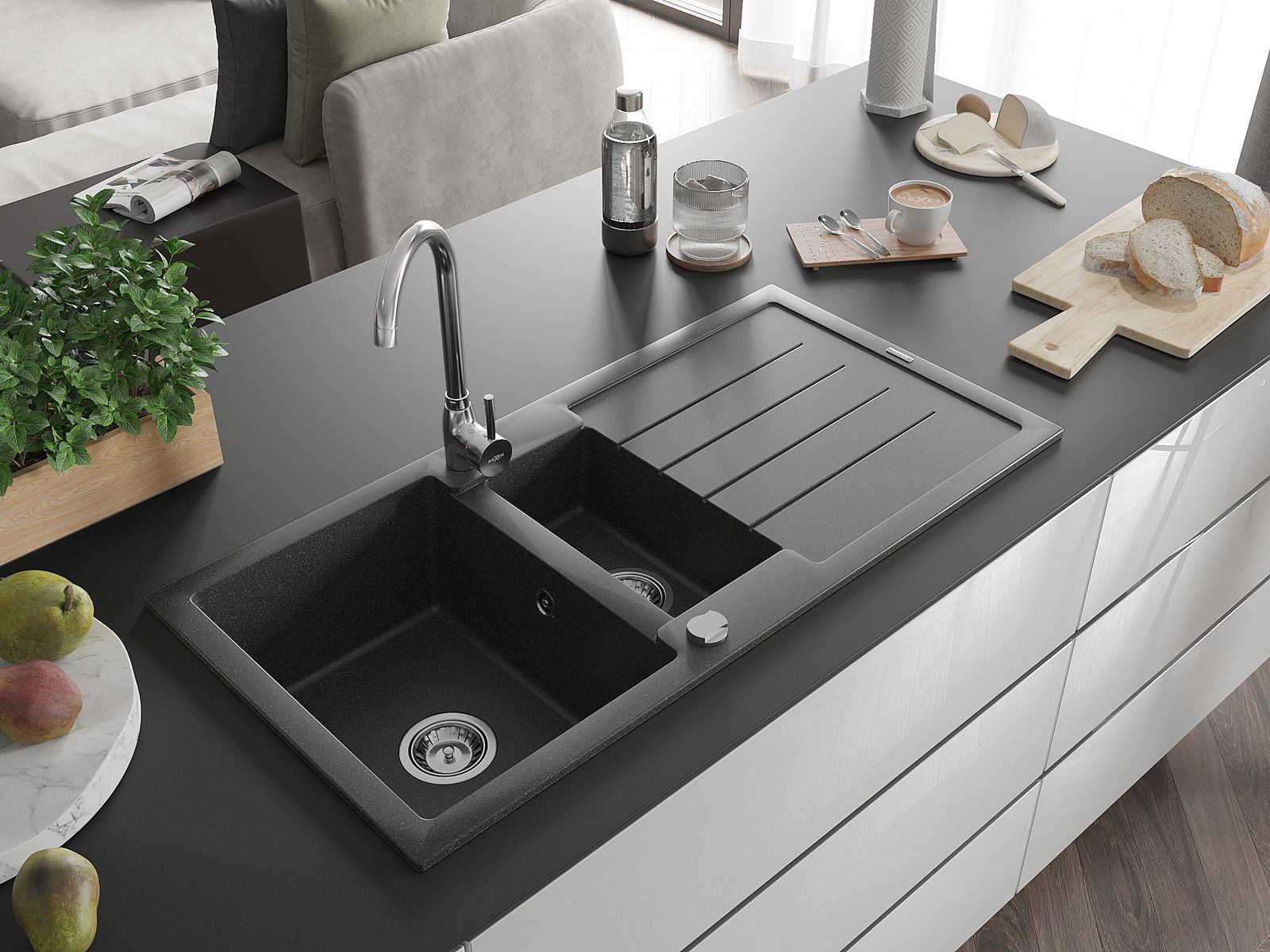 Dřez byl vyroben z vysoce kvalitního granitu. Představuje elegantní a především praktický doplněk každé kuchyně, bez ohledu na její styl. Vysoká kvalita a trvanlivost granitu zajišťují dlouholeté používání.