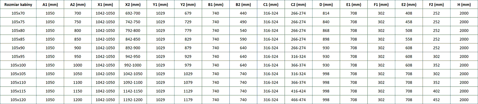 Velikost: 105x100 cm (levé dveře 105 cm, pravé dveře 100 cm)