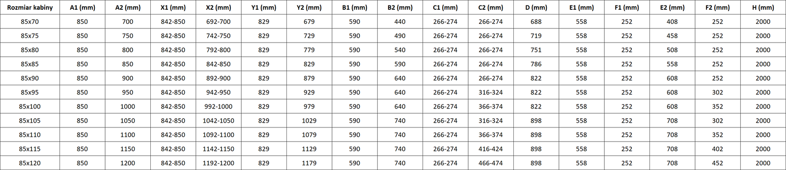 Rozměr: 85x70 cm (levé dveře 85 cm, pravé dveře 70 cm)