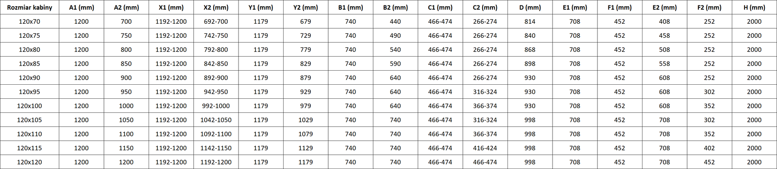Velikost: 120x115 cm (levé dveře 120 cm, pravé dveře 115 cm)