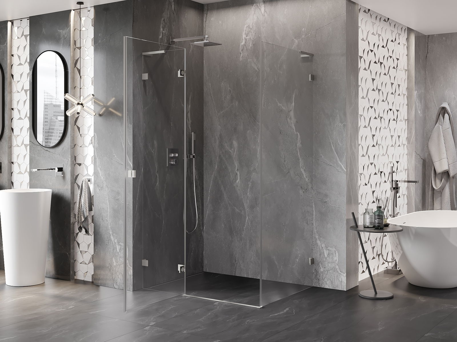 Spony a závěsy byly vyrobeny z velmi odolné mosazi a navíc vytvářejí zarovnanou plochu skla. Je to vynikající volba, která kombinuje eleganci, odolnost a moderní design. Díky těmto řešením získává sprcha na estetice a zároveň usnadňuje udržování čistoty.