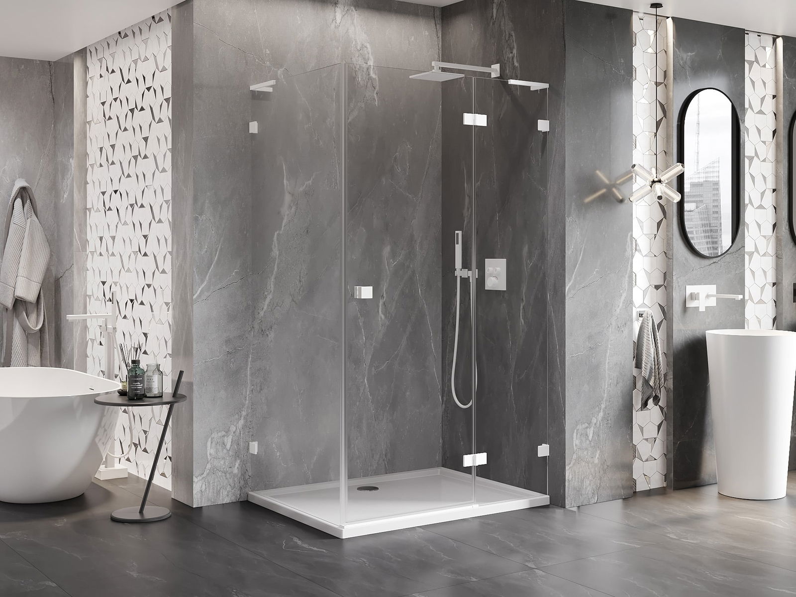 Spony a závěsy byly vyrobeny z velmi odolné mosazi a navíc vytvářejí zarovnanou plochu skla. Je to vynikající volba, která kombinuje eleganci, odolnost a moderní design. Díky těmto řešením získává sprcha na estetice a zároveň usnadňuje udržování čistoty.