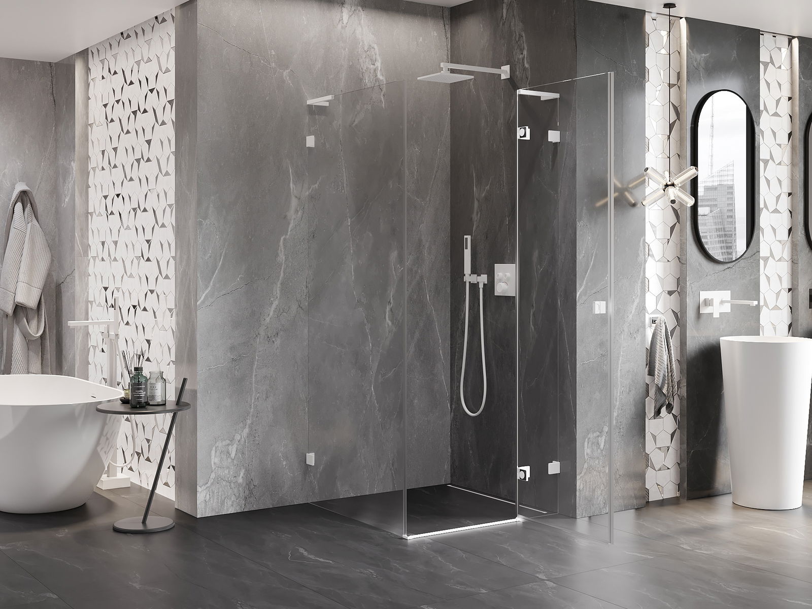 Spony a závěsy byly vyrobeny z velmi odolné mosazi a navíc vytvářejí zarovnanou plochu skla. Je to vynikající volba, která kombinuje eleganci, odolnost a moderní design. Díky těmto řešením získává sprcha na estetice a zároveň usnadňuje udržování čistoty.
