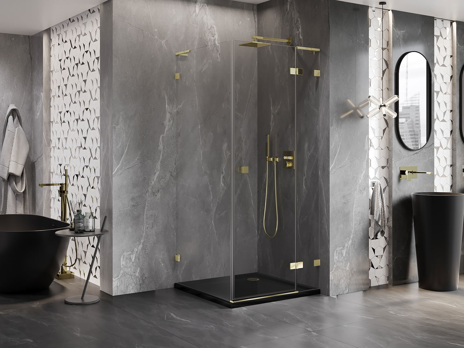 Spony a závěsy byly vyrobeny z velmi odolné mosazi a navíc vytvářejí zarovnanou plochu skla. Je to vynikající volba, která kombinuje eleganci, odolnost a moderní design. Díky těmto řešením získává sprcha na estetice a zároveň usnadňuje udržování čistoty.