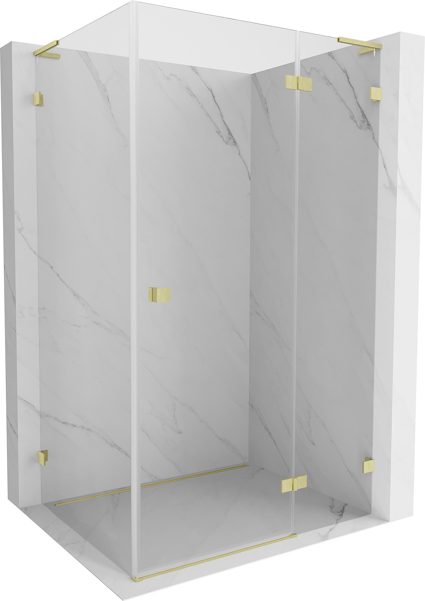 Mexen Lunar L sprchový kout, pravé sklápěcí dveře 90 x 80 cm, transparentní, zlato kartáčované - 834L-090-080-55-00-P
