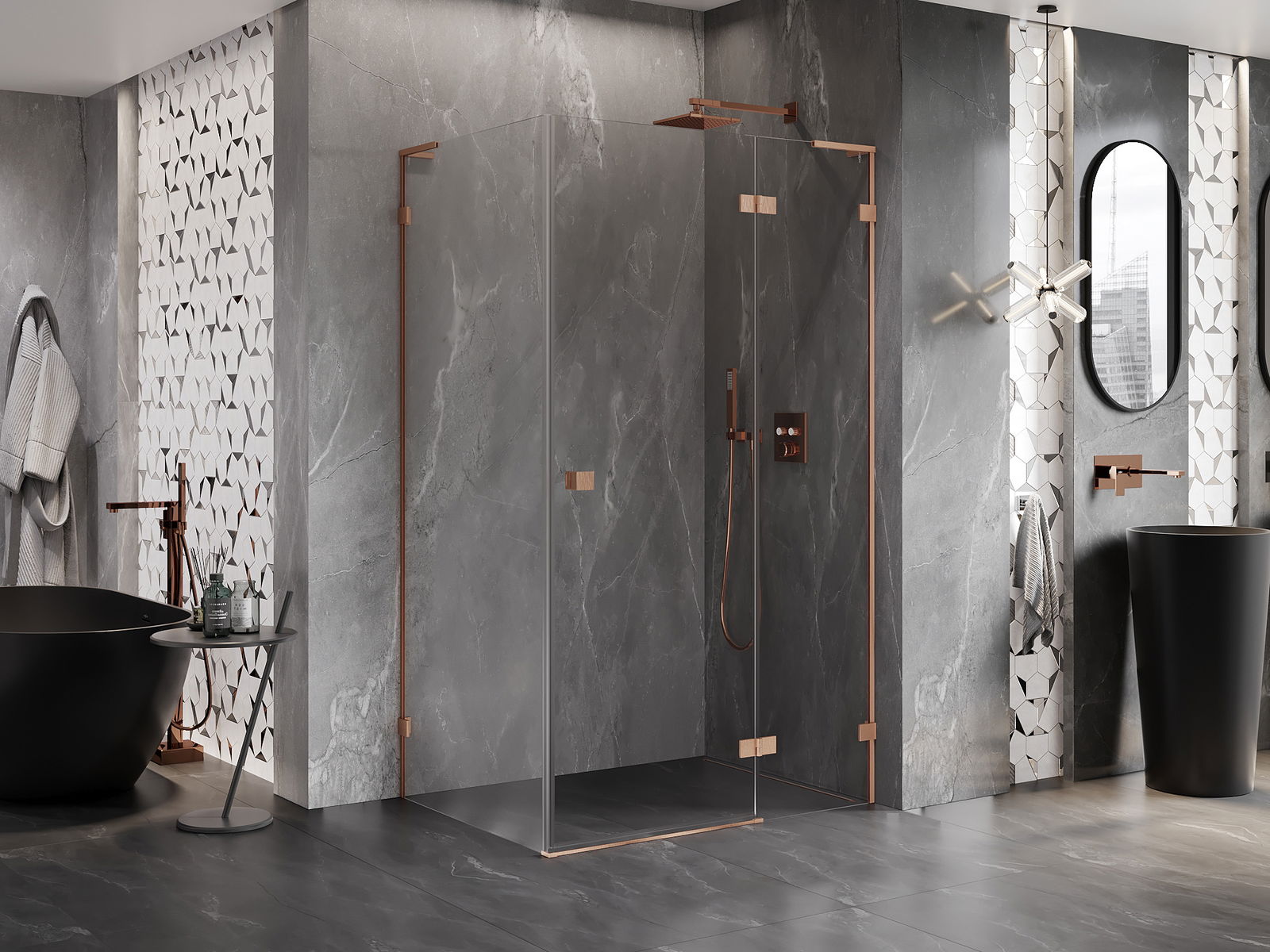 Mexen Lunar L sprchový kout jednokřídlý pravý 95 x 90 cm, transparentní, kartáčovaná měď - 834L-095-090-65-00-P
