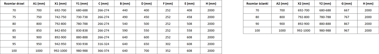 Velikost: 85x80 cm (dveře pravé 85 cm, stěna 80 cm)