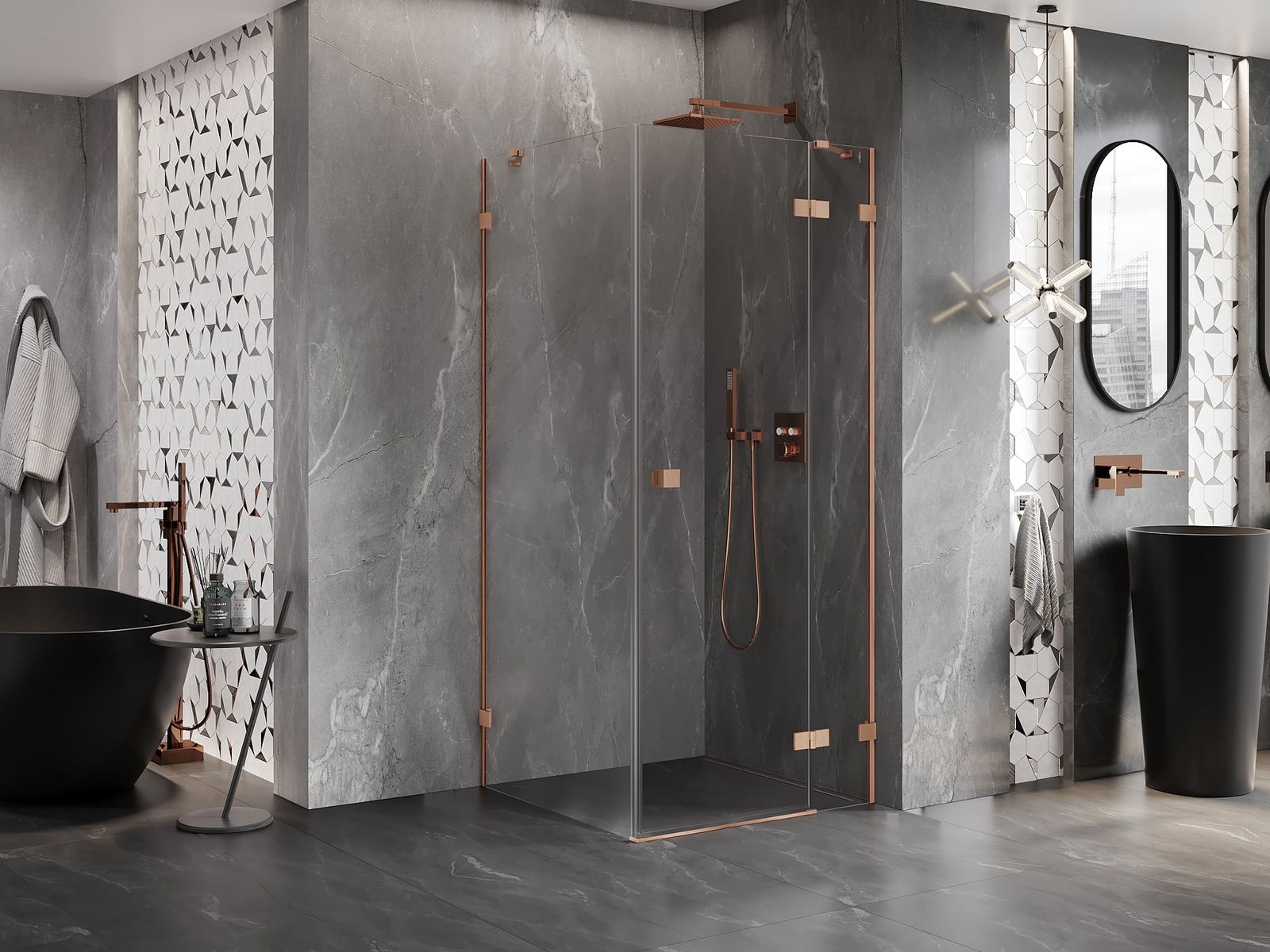 Spony a závěsy byly vyrobeny z velmi odolné mosazi a navíc vytvářejí zarovnanou plochu skla. Je to vynikající volba, která kombinuje eleganci, odolnost a moderní design. Díky těmto řešením získává sprcha na estetice a zároveň usnadňuje udržování čistoty.