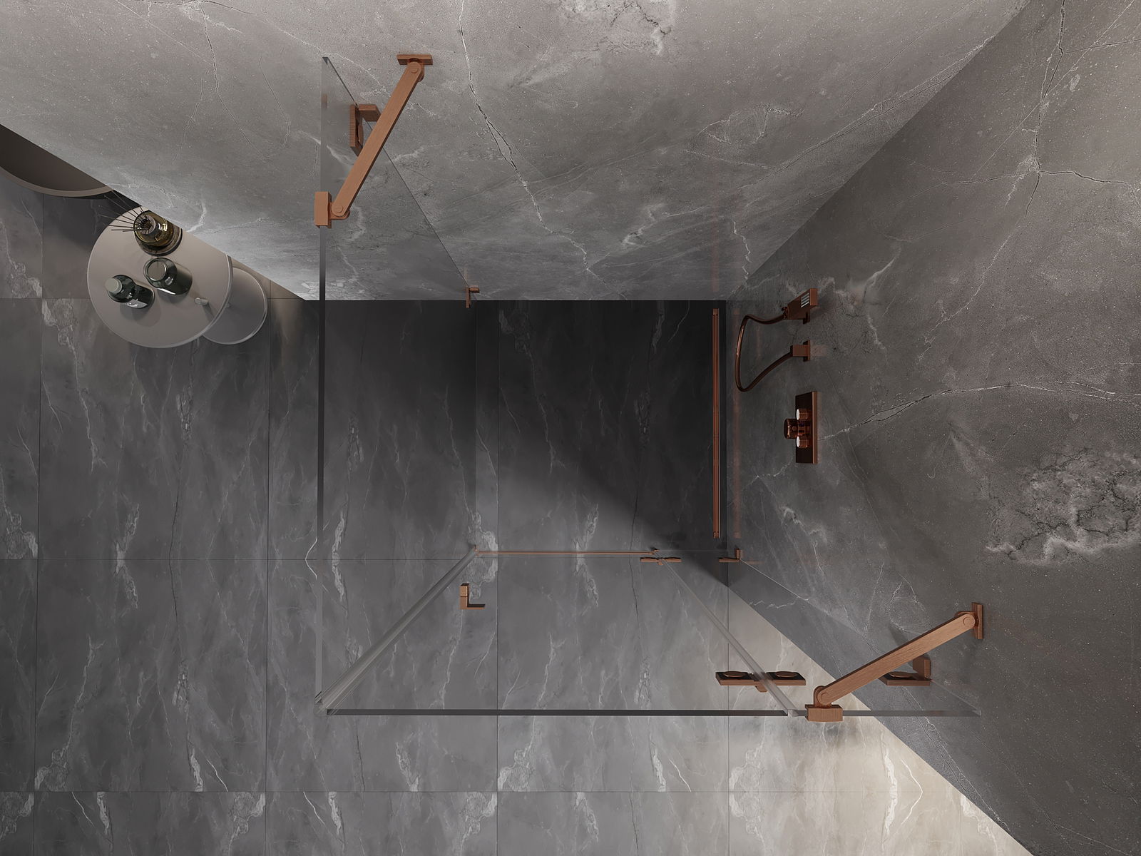 Mexen Lunar, sprchový kout s otočnými dveřmi pravý 100 x 100 cm, transparentní, kartáčovaná měď - 834-100-100-65-00-P