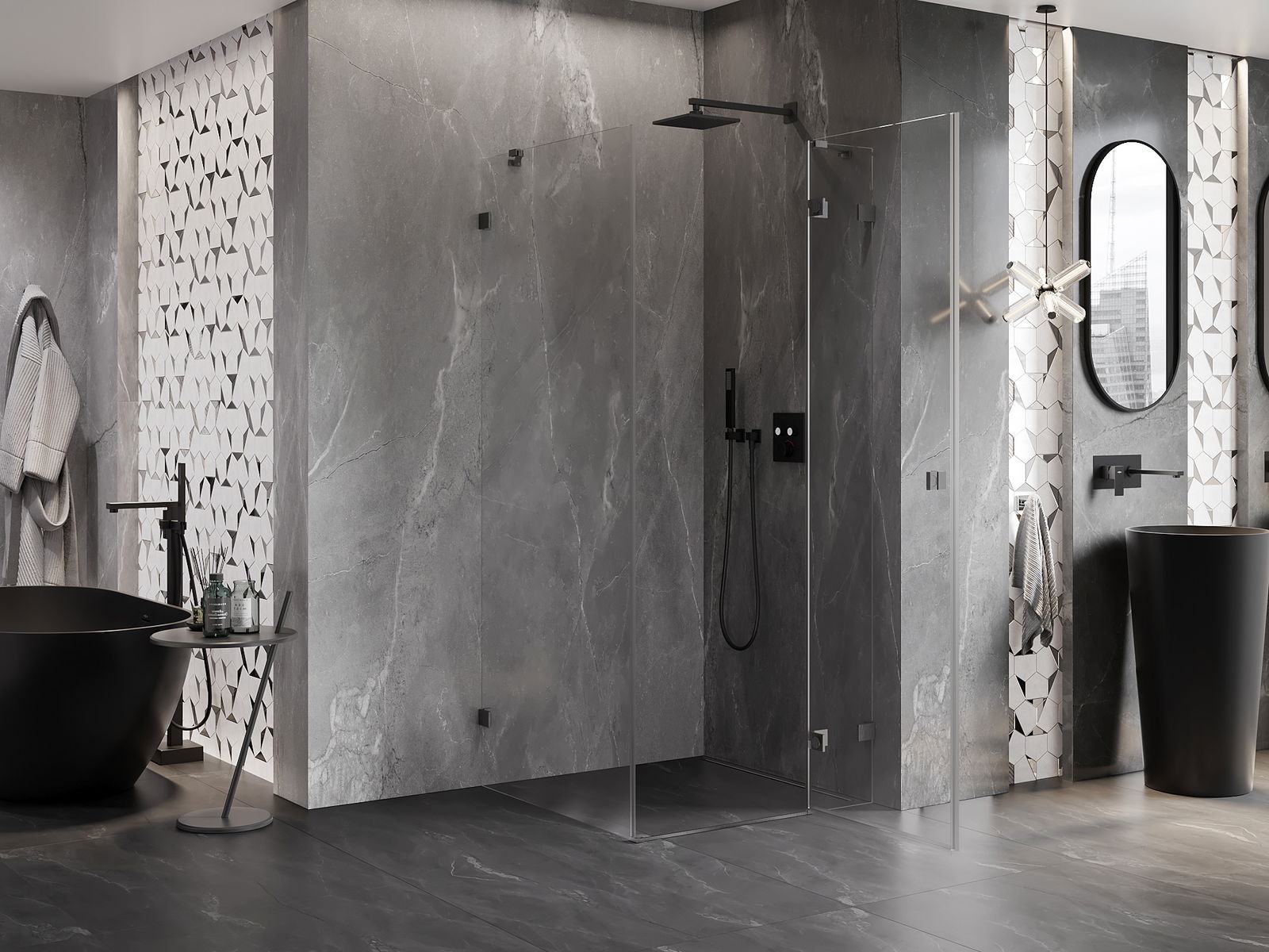 Praktická a pohodlná rukojeť je vyrobena z odolného a trvanlivého kovu. Moderní tvar ve spojení s povrchovou úpravou, která ladí s barvou profilů, dodává celku moderní a stylový vzhled, zdůrazňující estetiku každé koupelny.