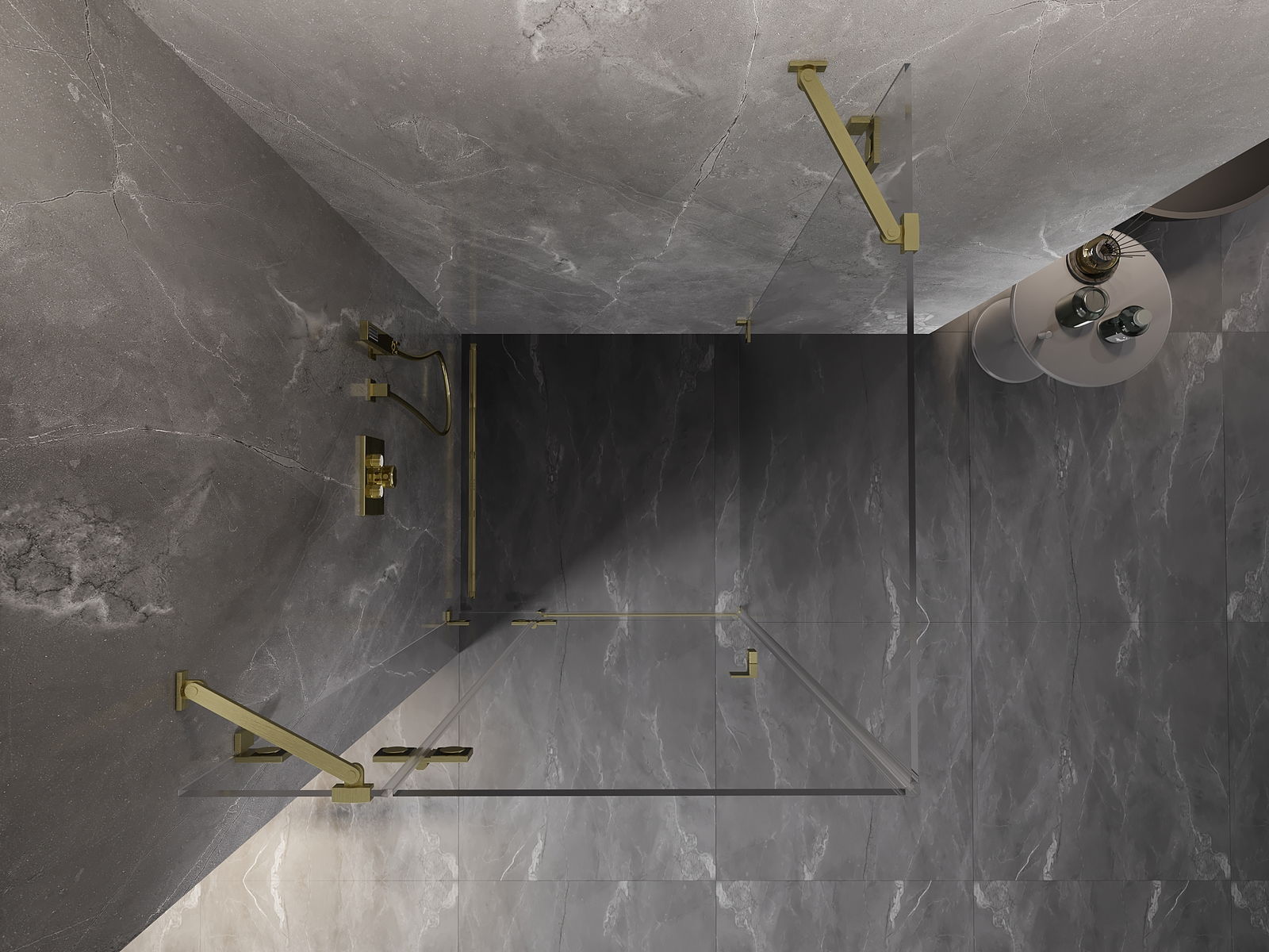 Mexen Lunar sprchový kout otevíratelný levý 80 x 80 cm, průhledný, zlatý kartáčovaný - 834-080-080-55-00-L