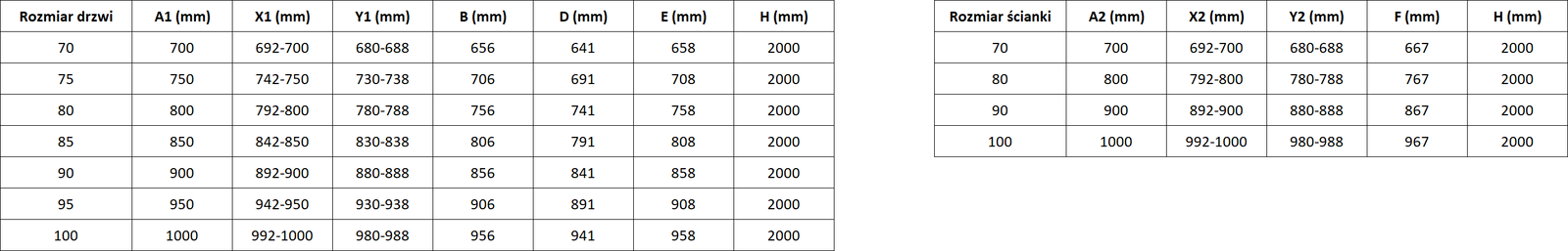 Velikost: 90x90 cm (levé dveře 90 cm, stěna 90 cm)