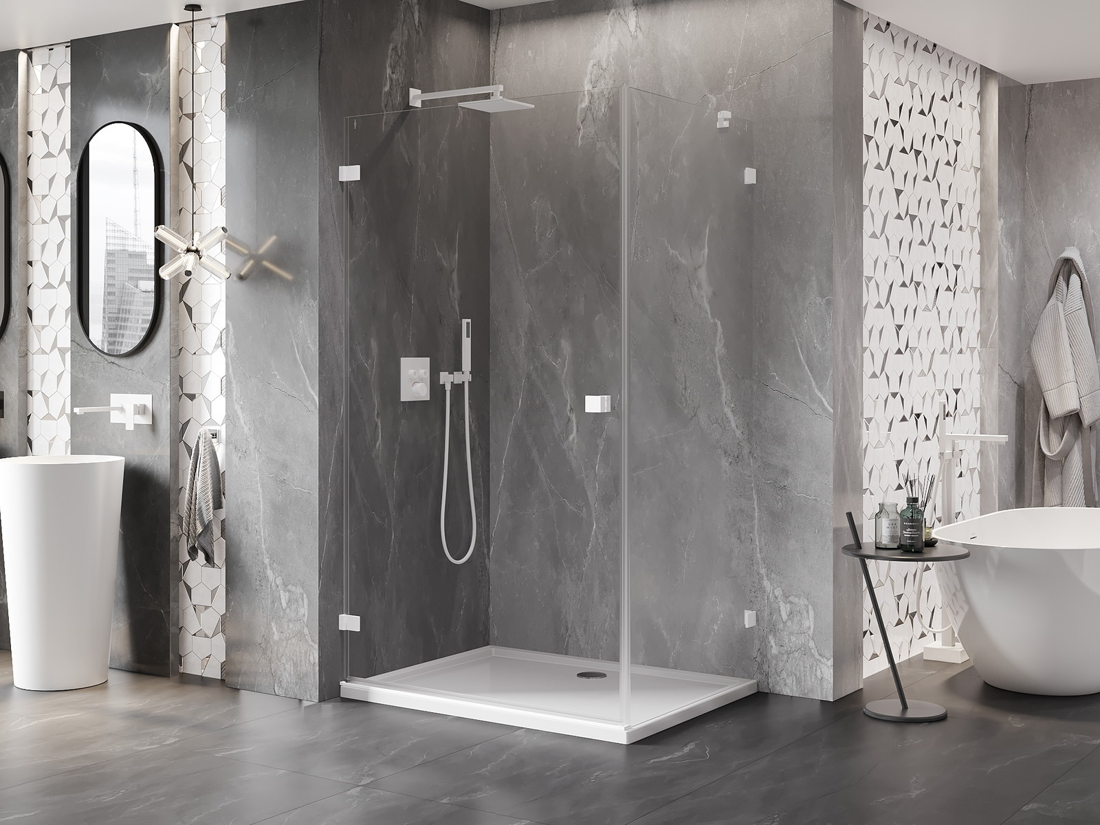Praktická a pohodlná rukojeť je vyrobena z odolného a trvanlivého kovu. Moderní tvar ve spojení s povrchovou úpravou, která ladí s barvou profilů, dodává celku moderní a stylový vzhled, zdůrazňující estetiku každé koupelny.