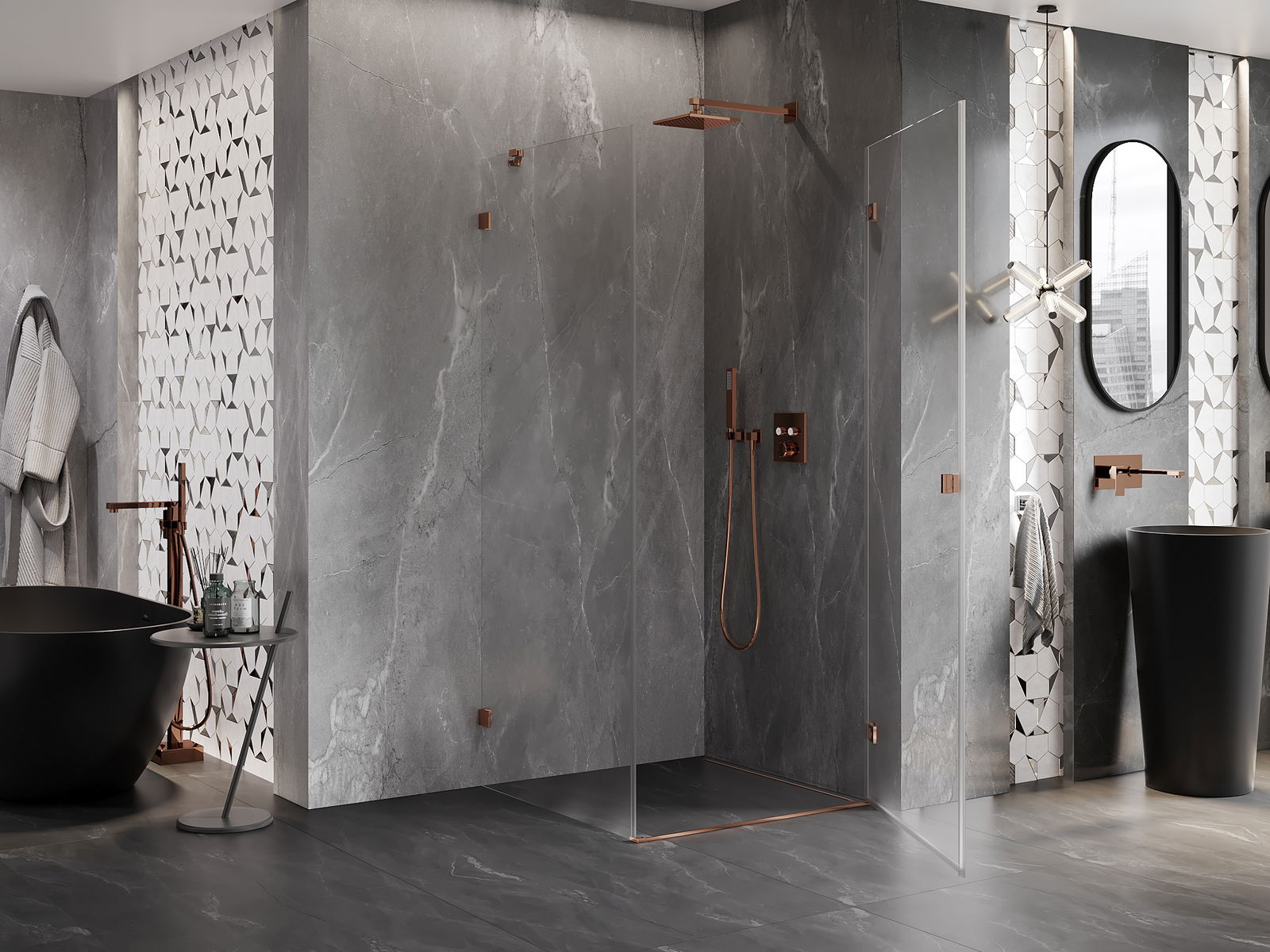 Praktická a pohodlná rukojeť je vyrobena z odolného a trvanlivého kovu. Moderní tvar ve spojení s povrchovou úpravou, která ladí s barvou profilů, dodává celku moderní a stylový vzhled, zdůrazňující estetiku každé koupelny.
