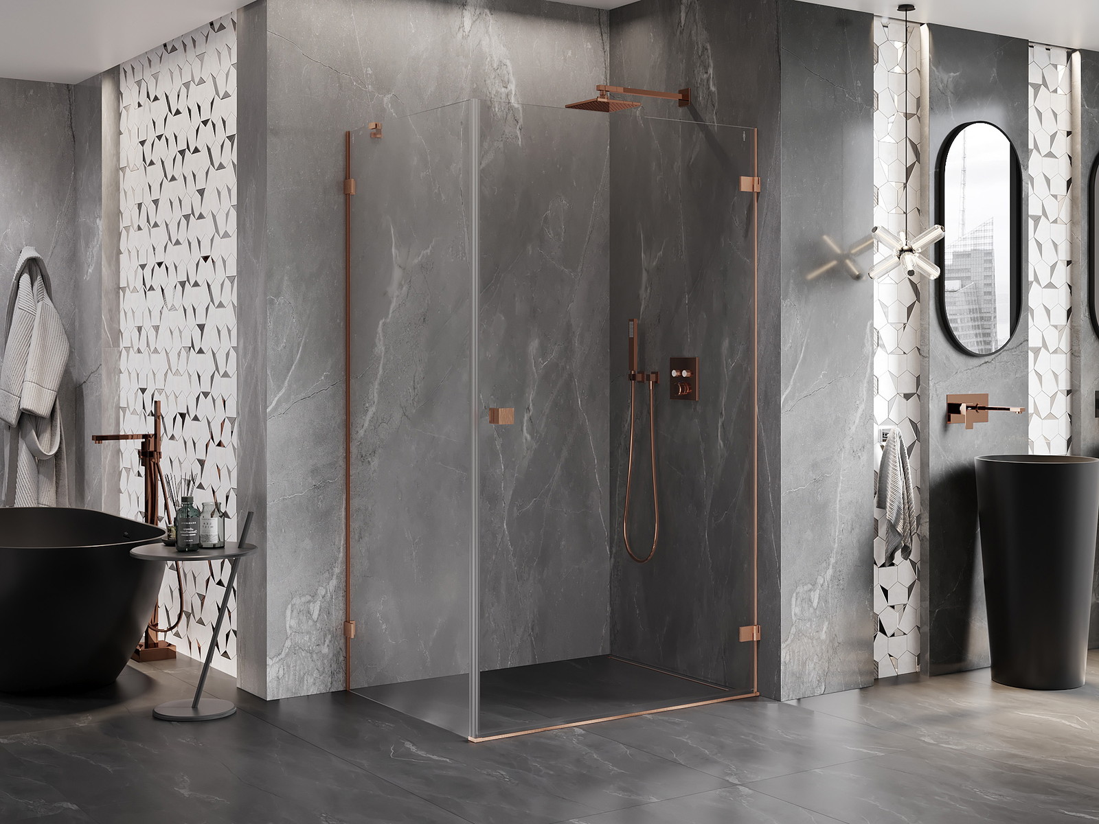 Praktická a pohodlná rukojeť je vyrobena z odolného a trvanlivého kovu. Moderní tvar ve spojení s povrchovou úpravou, která ladí s barvou profilů, dodává celku moderní a stylový vzhled, zdůrazňující estetiku každé koupelny.