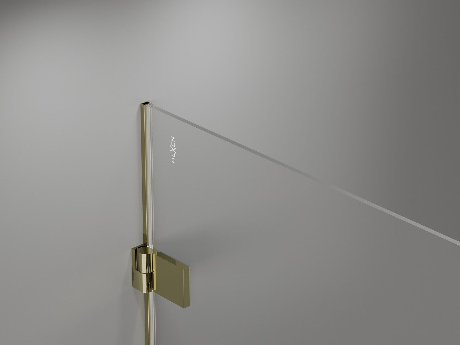 Mosazné kliky splývající s plochou skla