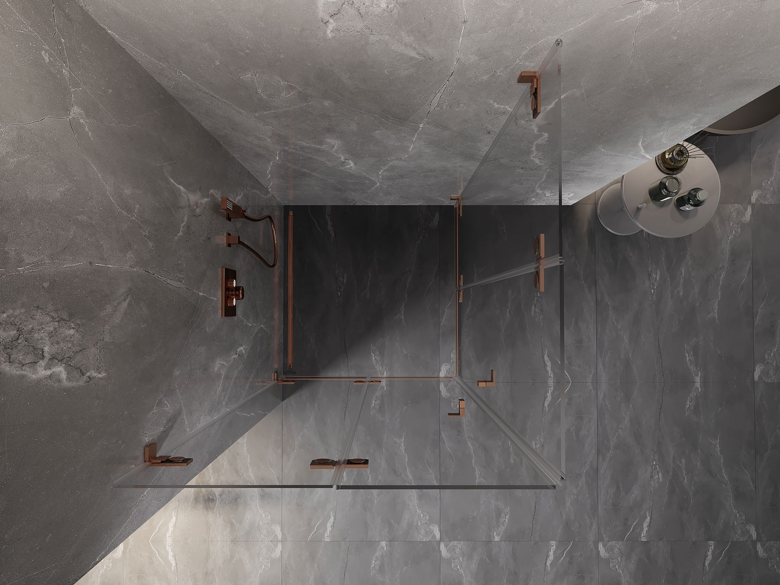 Mexen Lunar-F Duo skládací sprchový kout 100 x 100 cm, transparentní, kartáčovaná měď - 836-100L-100P-65-00