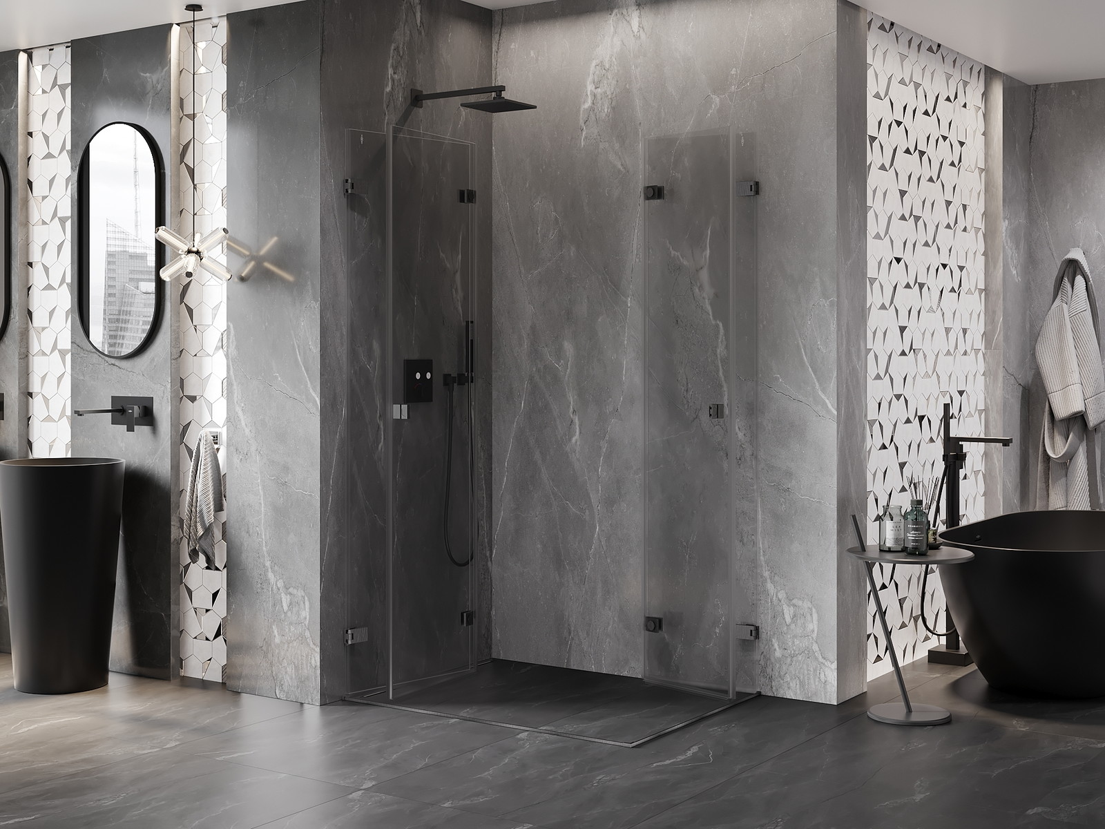 Možnost skládání dveří, jak dovnitř, tak ven, umožňuje získat více prostoru při nepoužívání sprchy. Je to ideální řešení pro menší koupelny, maximálně využívající dostupný prostor.