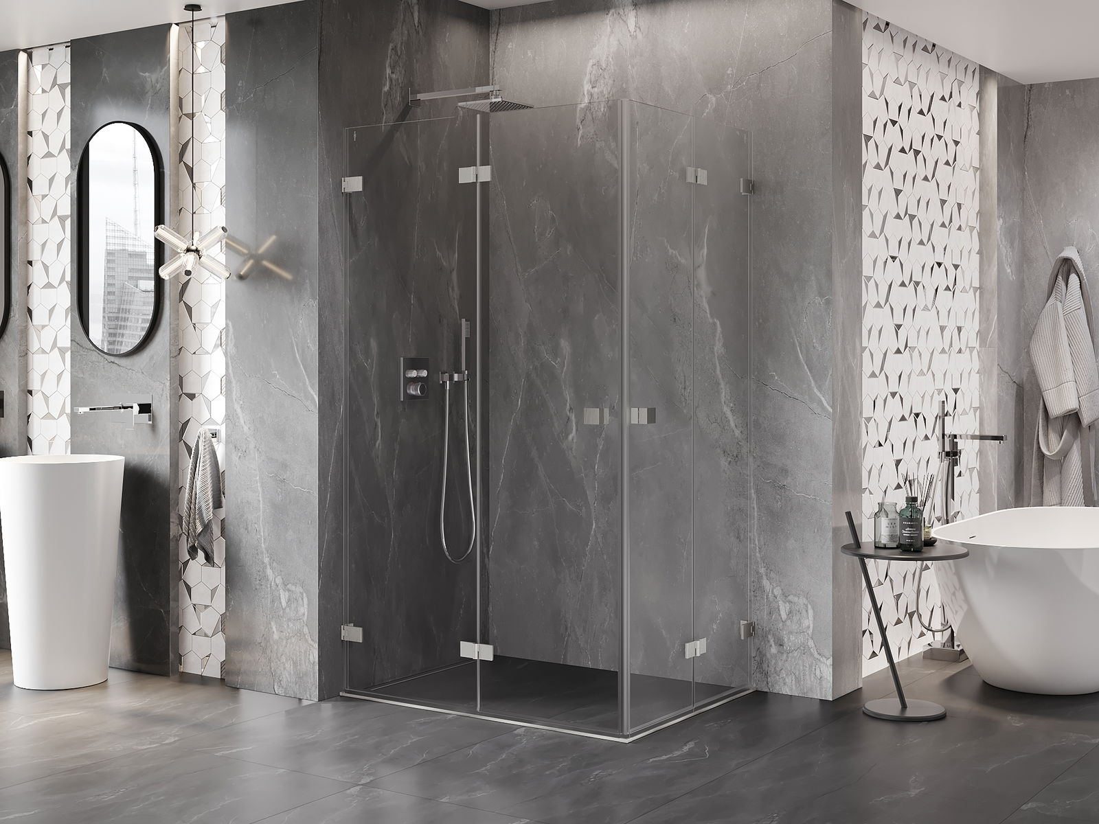 Možnost skládání dveří, jak dovnitř, tak ven, umožňuje získat více prostoru při nepoužívání sprchy. Je to ideální řešení pro menší koupelny, maximálně využívající dostupný prostor.