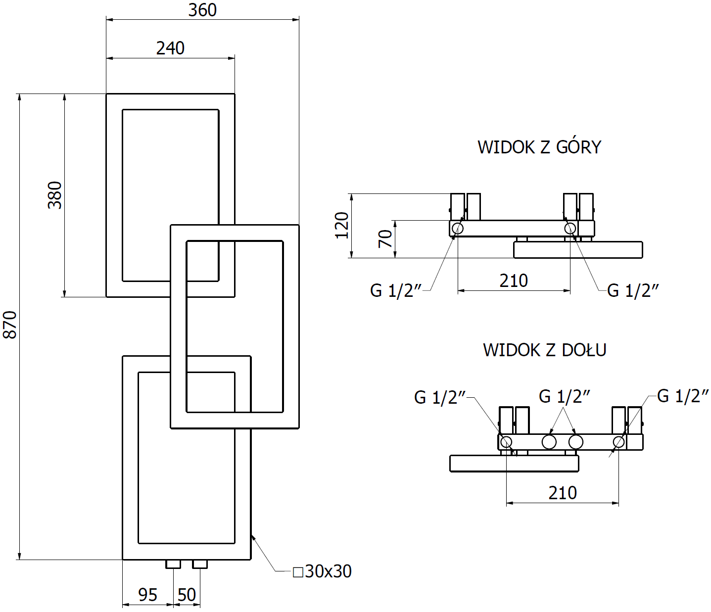 - 4xG ½″ zhora a dole z pravé nebo levé strany