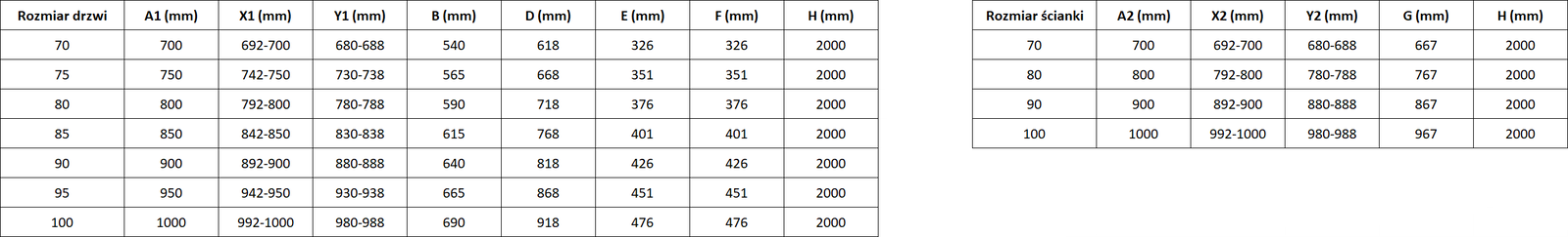 Rozměr: 100x70 cm (levé dveře 100 cm, stěna 70 cm)