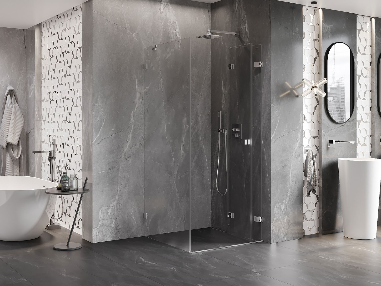 Možnost skládání dveří, jak dovnitř, tak ven, umožňuje získat více prostoru při nepoužívání sprchy. Je to ideální řešení pro menší koupelny, maximálně využívající dostupný prostor.