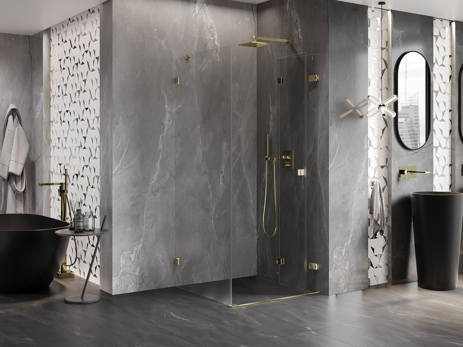 Možnost skládání dveří, jak dovnitř, tak ven, umožňuje získat více prostoru při nepoužívání sprchy. Je to ideální řešení pro menší koupelny, maximálně využívající dostupný prostor.