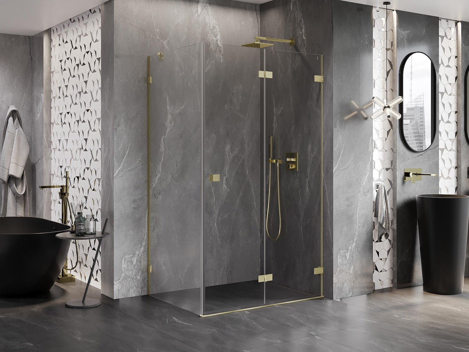Mexen Lunar-F skládací sprchový kout pravý 100 x 80 cm, transparentní, zlatý kartáčovaný - 836-100-080-55-00-P