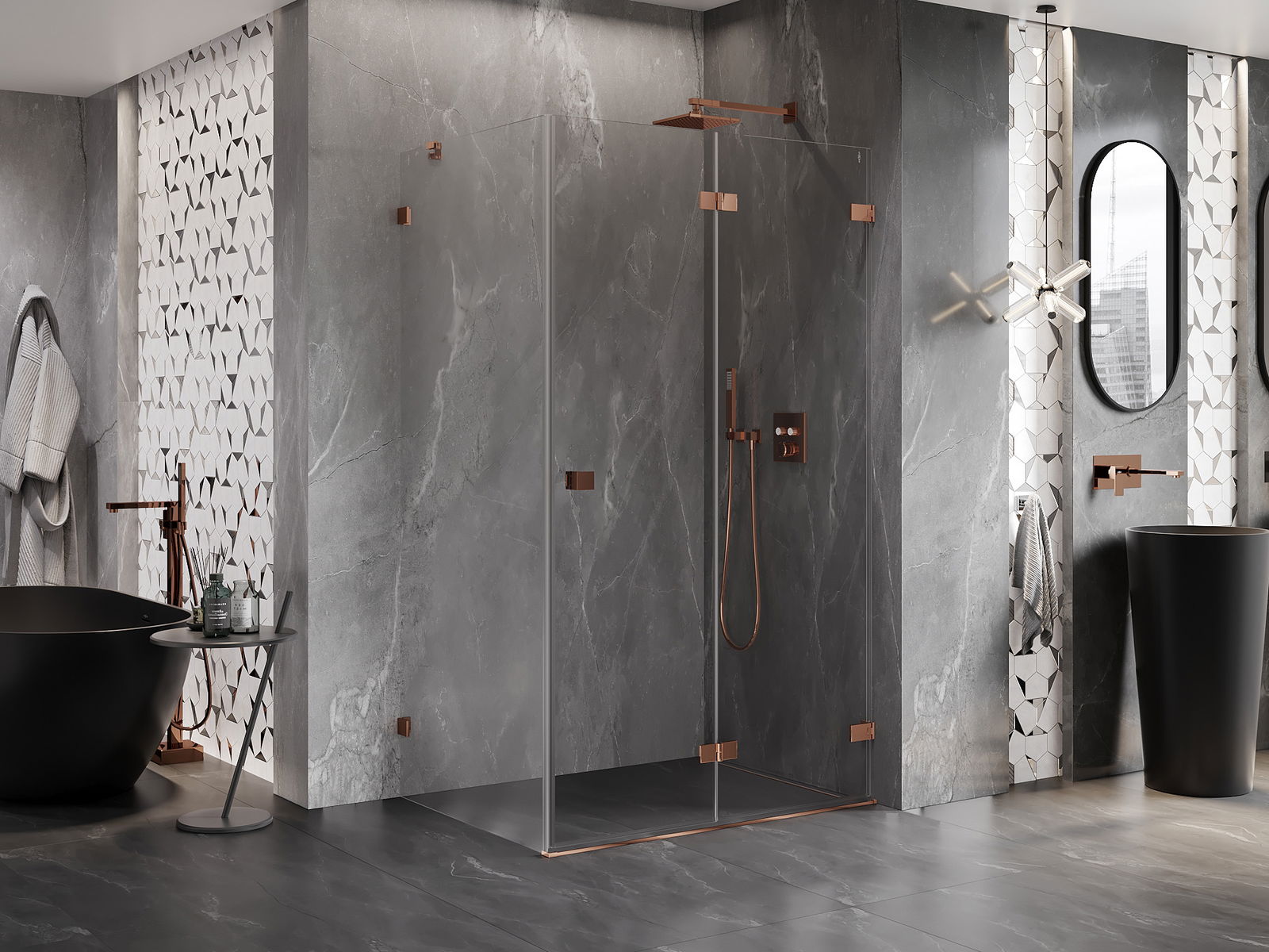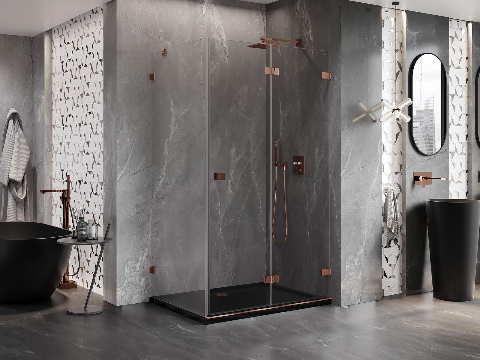 Možnost skládání dveří, jak dovnitř, tak ven, umožňuje získat více prostoru při nepoužívání sprchy. Je to ideální řešení pro menší koupelny, maximálně využívající dostupný prostor.