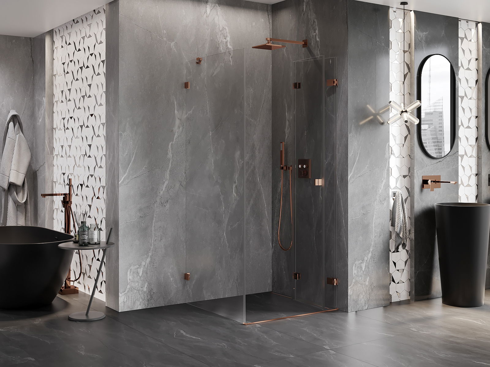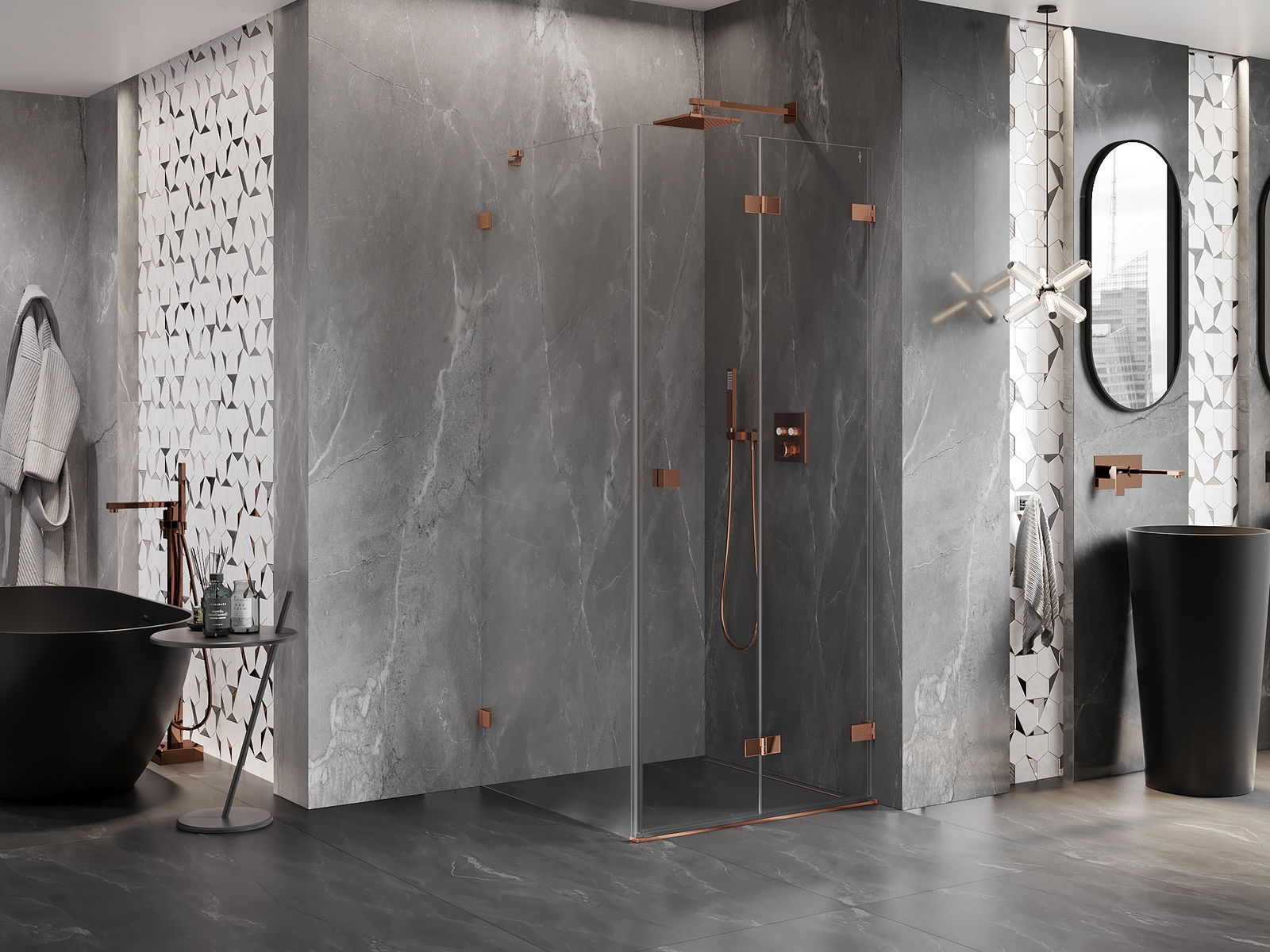Spony a závěsy byly vyrobeny z velmi odolné mosazi a navíc vytvářejí zarovnanou plochu skla. Je to vynikající volba, která kombinuje eleganci, odolnost a moderní design. Díky těmto řešením získává sprcha na estetice a zároveň usnadňuje udržování čistoty.