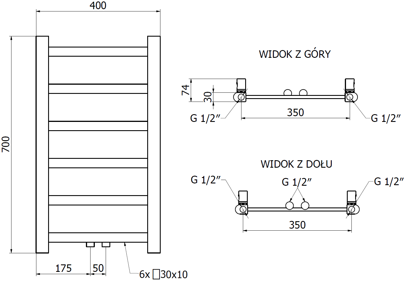 - 4xG ½″ z vrchu a dolu z pravé nebo levé strany
