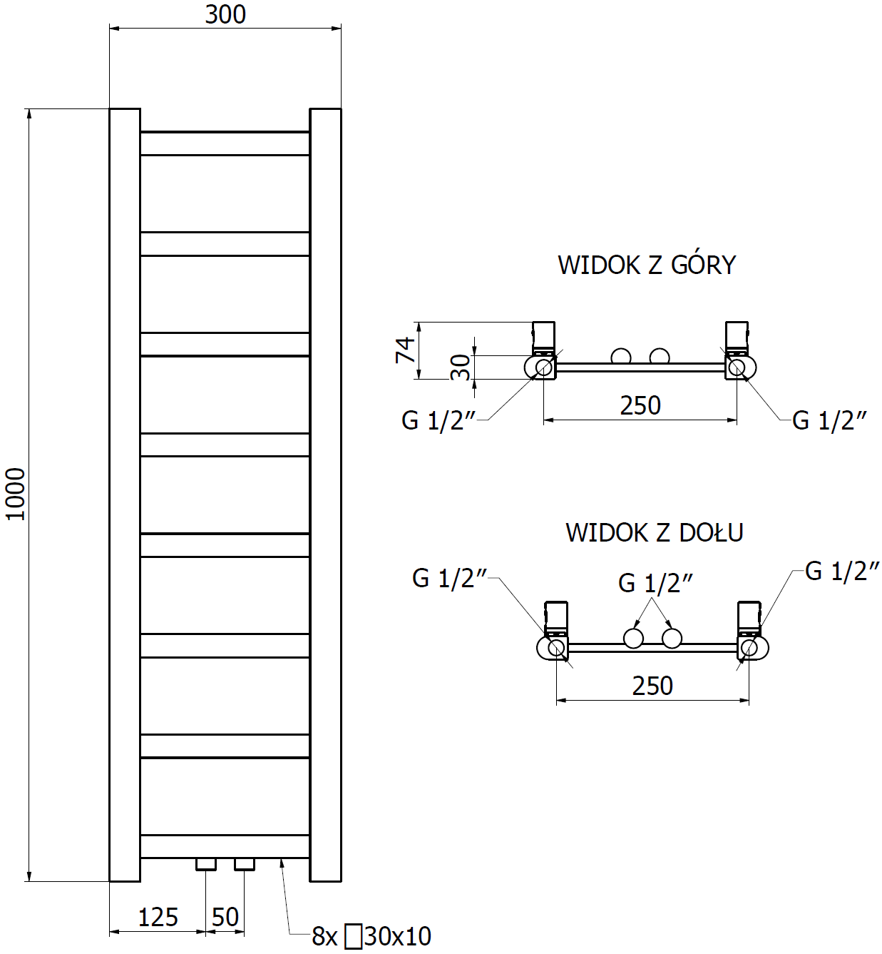 - 4xG ½″ z horní a dolní části z pravé nebo levé strany