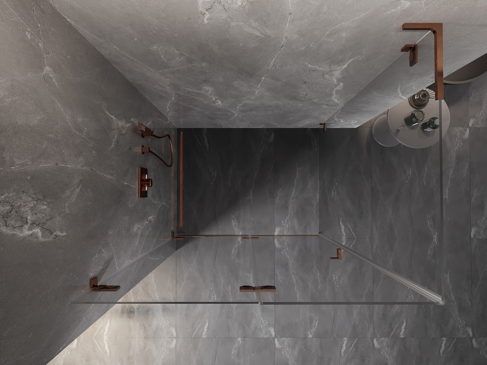 Mexen Lunar-F L skládací sprchový kout levý 85 x 80 cm, transparentní, růžové zlato - 836L-085-080-60-00-L